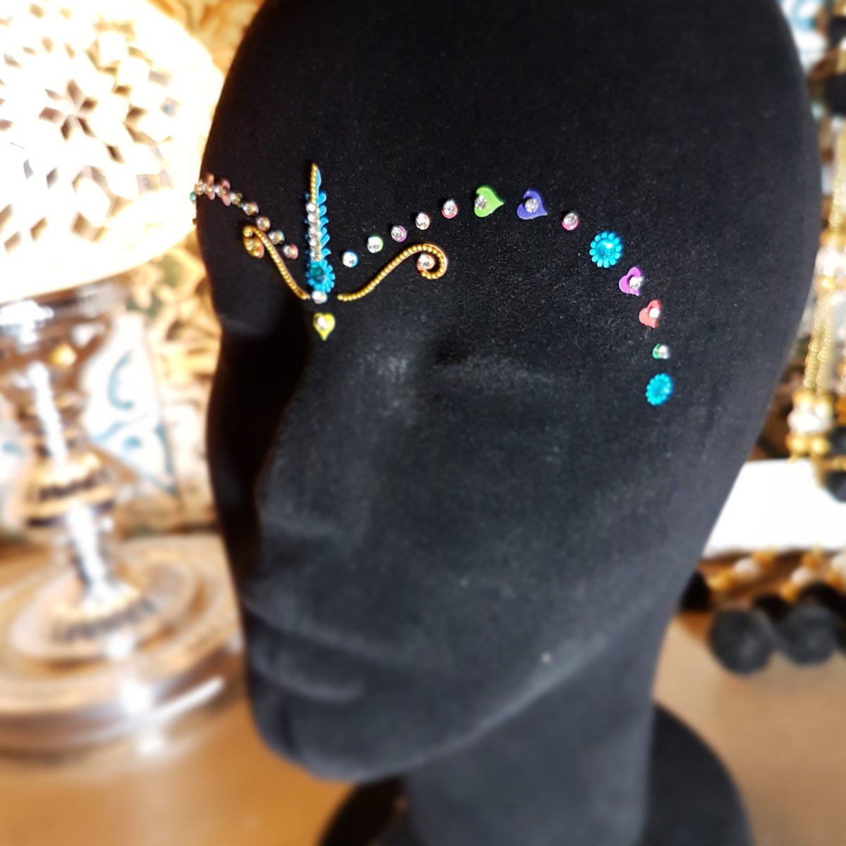 Bindis är populärt i södra Asien. De användes till en början endast av hinduer, men nu på senare år har fler börjat använda sig av bindis som ansiktssmycke till vardags eller fest. Den sätts traditionellt mellan ögonbrynen. * Att fästa en bindi i pannan är ett populärt inslag till prins- och prinsesskalaset. * En perfekt detalj till partyoutfiten. * Sätter en extra glimrande touch på dina pysselprojekt. Låt fantasin flöda! Kan användas mer än en gång om man fäster de på en glatt yta som glas eller plast.
