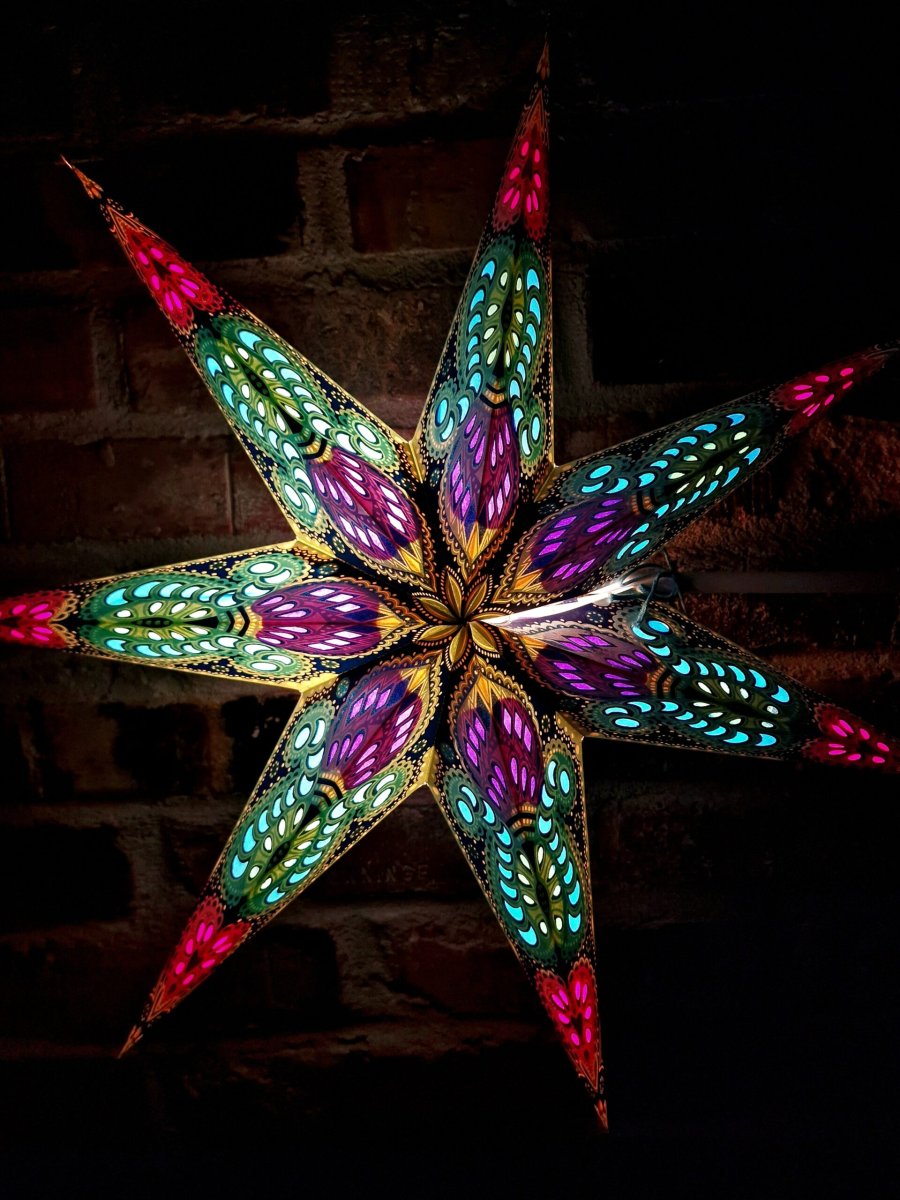 Varje adventsstjärna pryds med vackra mönster och glitter. När de hängs i fönstret, sprider de ett mjukt och varmt ljus, vilket skapar en mysig och inbjudande atmosfär i ditt hem. Ljuset som silas genom de vackra mönstren och de transparenta färgerna kastar ett magiskt sken på väggarna, perfekt för att skapa en stämningsfull miljö under julen.