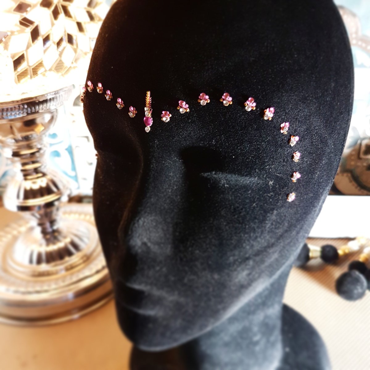 Bindis är populärt i södra Asien. De användes till en början endast av hinduer, men nu på senare år har fler börjat använda sig av bindis som ansiktssmycke till vardags eller fest. Den sätts traditionellt mellan ögonbrynen. * Att fästa en bindi i pannan är ett populärt inslag till prins- och prinsesskalaset. * En perfekt detalj till partyoutfiten. * Sätter en extra glimrande touch på dina pysselprojekt. Låt fantasin flöda! Kan användas mer än en gång om man fäster de på en glatt yta som glas eller plast.