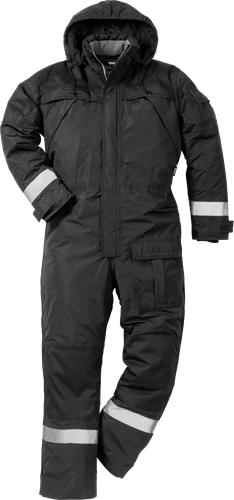 Vatten- och vindtät quiltfodrad overall med andasfunktion. Funktionsoverall med förstärkningar på utsatta delar och tvåvägs dragkedjor längs utsidorna på hela benen. Reflexer på ärmar och ben för extra hög synbarhet.