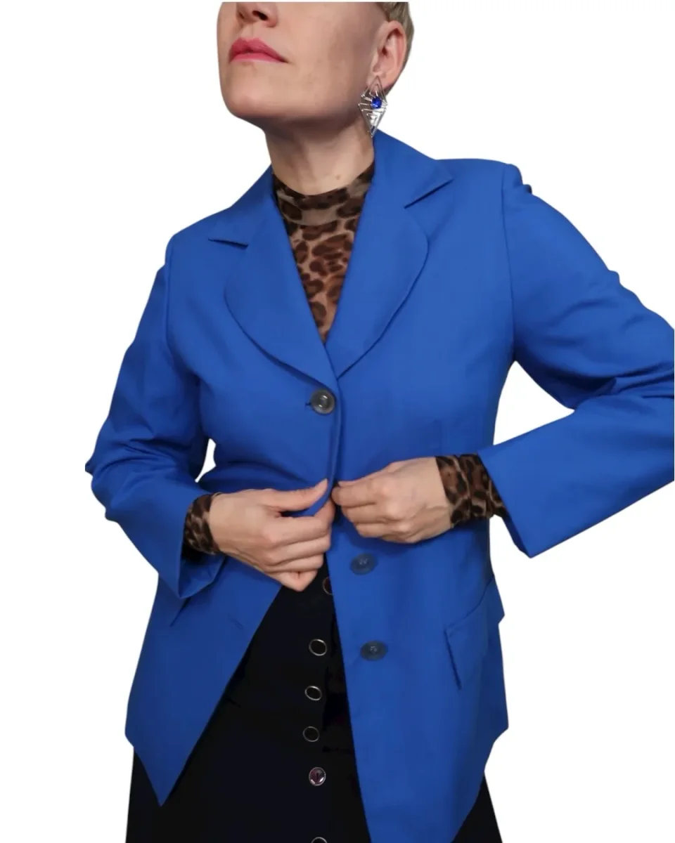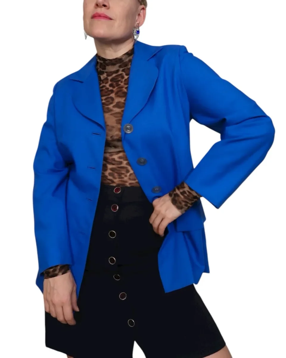 BLÅ KAVAJ MED RUNDADE SLAG (S)