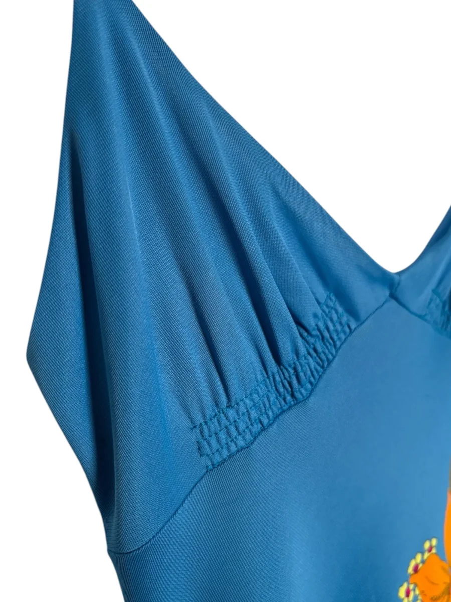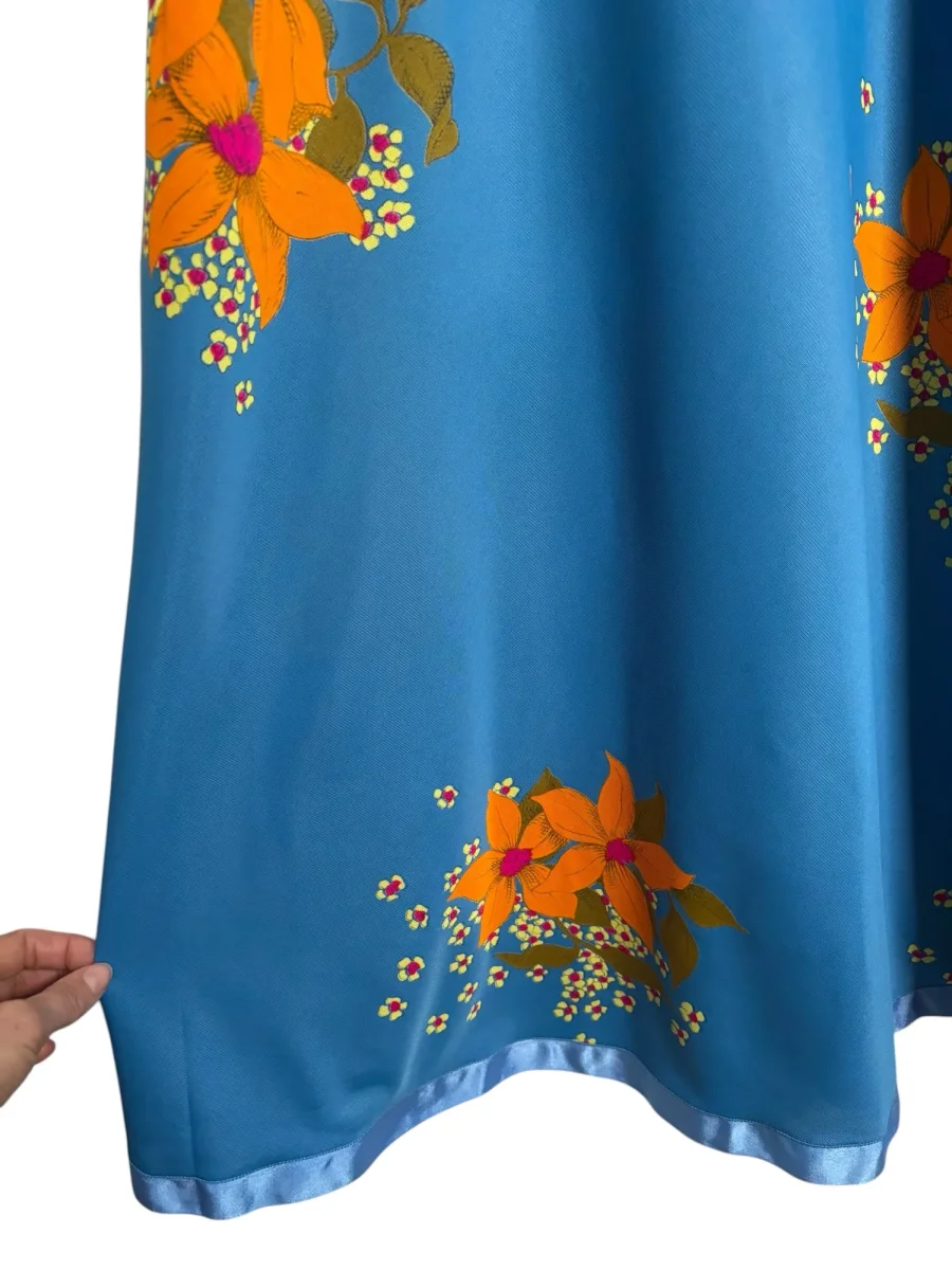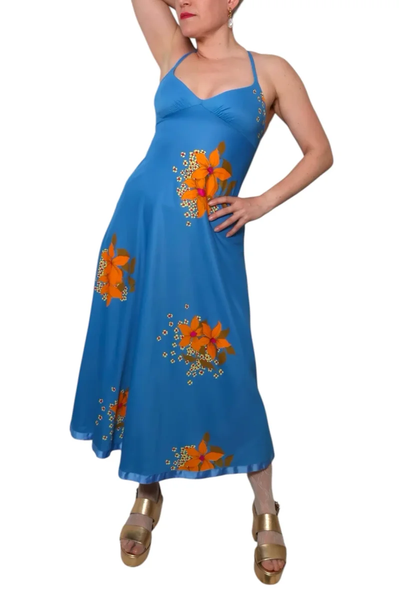 BLÅ KLÄNNING MED ORANGE BLOMMOR (XS)