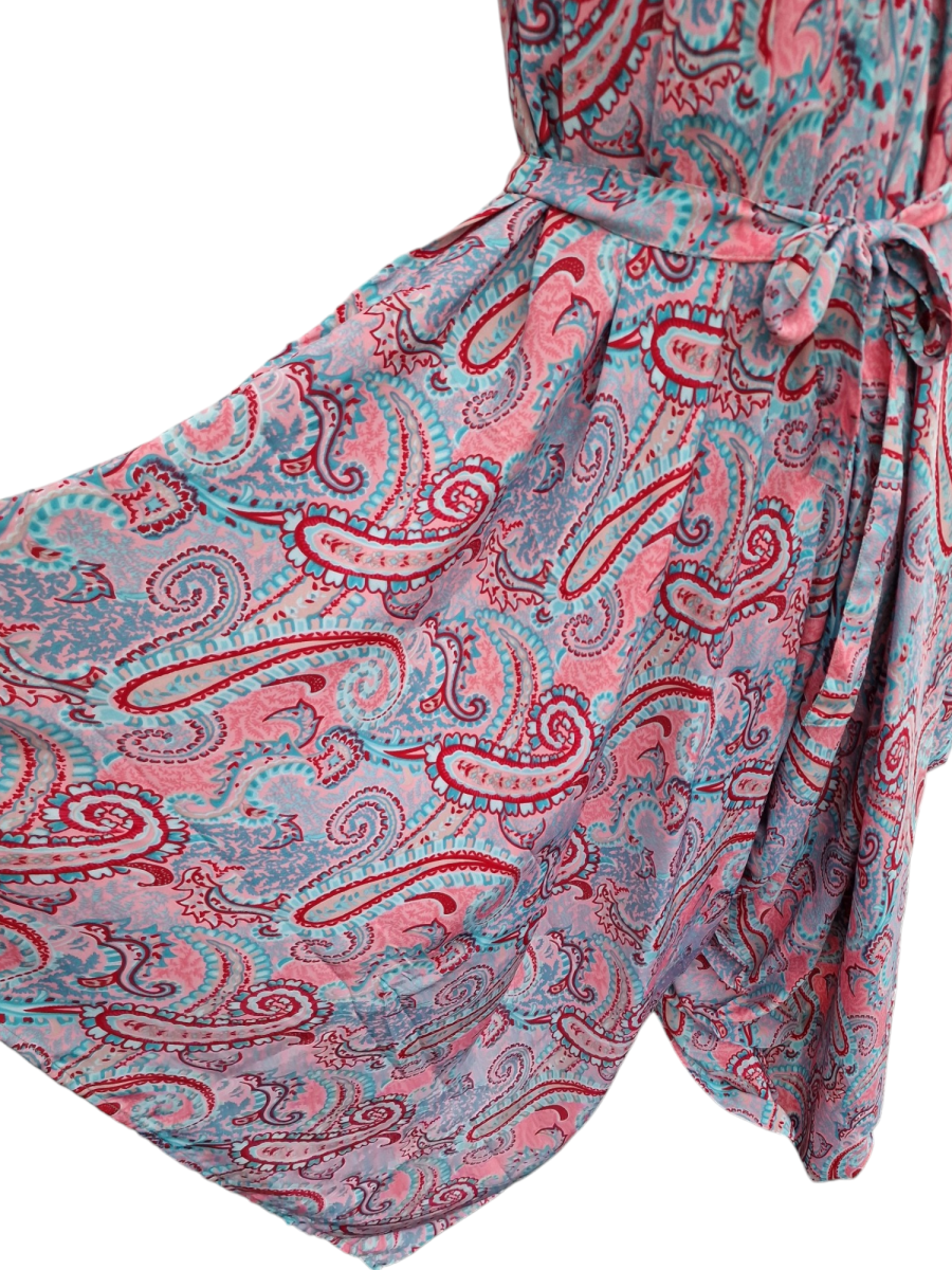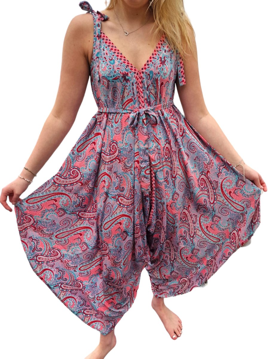 Utforska Bohemisk Elegans: Silkesbyxdress med skärp och knytband till ärmar. Ge din garderob en dos av bohemisk charm med vår exklusiva silkesbyxdress, skapad för den fria själen som värdesätter både stil och komfort. Denna vackra byxdress är tillverkad av silke och erbjuder en smickrande passform och en oemotståndlig känsla av lyx.