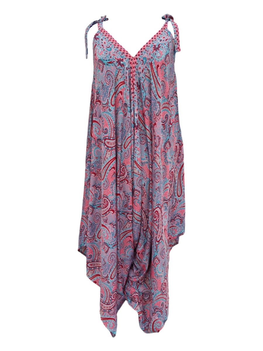 Ge din garderob en dos av bohemisk charm med vår exklusiva silkesbyxdress, skapad för den fria själen som värdesätter både stil och komfort.