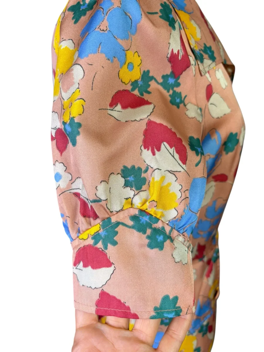 Gammelrosa kortärmad skjortjacka med stora snibbar och fina detaljer. Storlek XS-S Bystmått: 44 cm Axelmått: 36 cm Längd: 57 cm Midjemått: 80 cm Material okänt